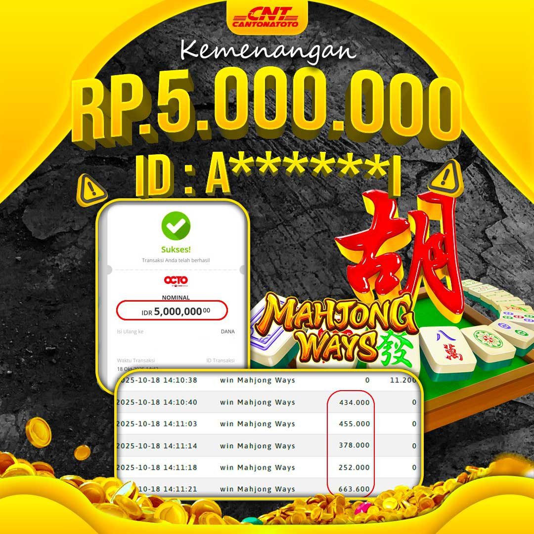 SENSASI LIAT SALDO M3L3D4K ITU GAX BISA DIJELASIN???? YANG TERPENTING NIKMATIN TIAP SP1N????” ❤️SEL4M4T KEPADA M3MB3R S3TIA CANTONATOTO ????TANGGAL : 18 OKTOBER 2025 ????USER ID : A******I ????B0 : CNTT ????M3N4NG : Mahjong Ways ????RP. 5.000.000